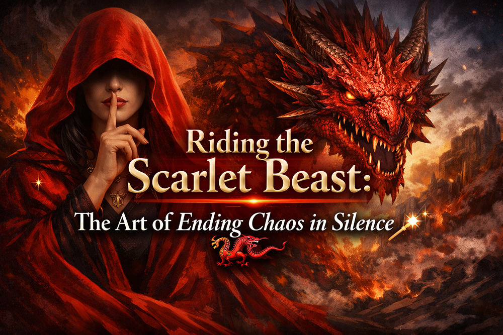 The Scarlet Beast is not a monster. It is a symbol. In the language of myth, psychology, and spirit, the Scarlet Beast represents integrated power — the moment when shadow and light stop fighting and begin cooperating.